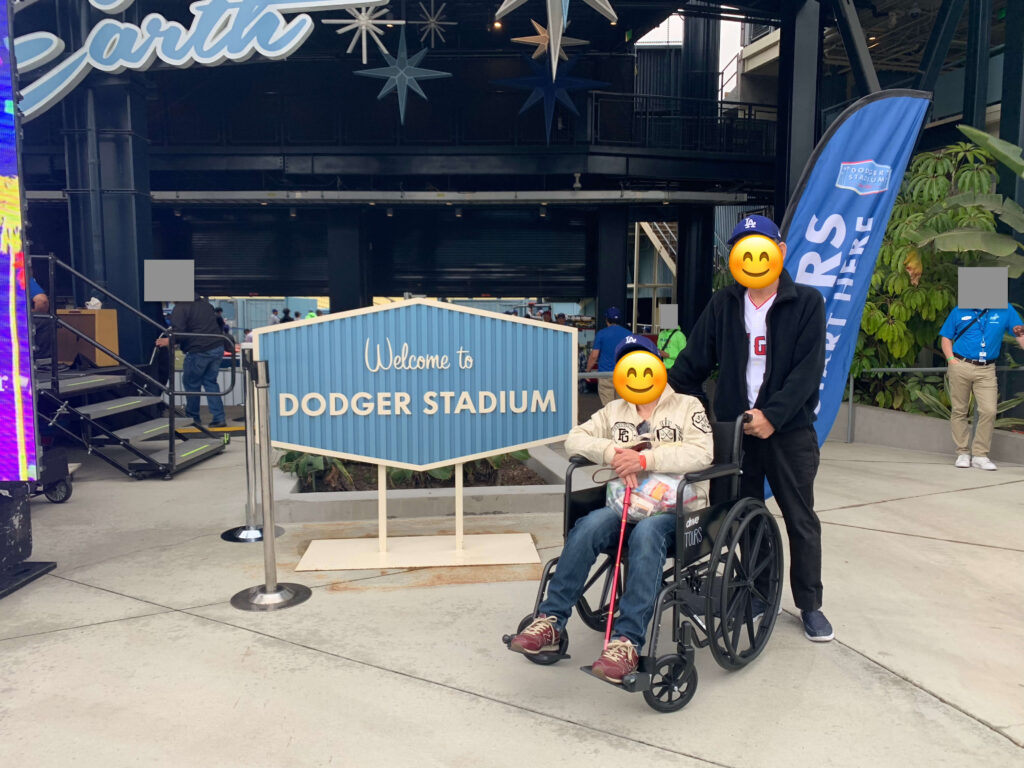 アメリカ在住で、日本から来た両親とドジャースタジアムへ。母は長距離の歩行が困難で空港内は車椅子移動ですが、段差や座席への階段などは自力で歩ける状態でした。